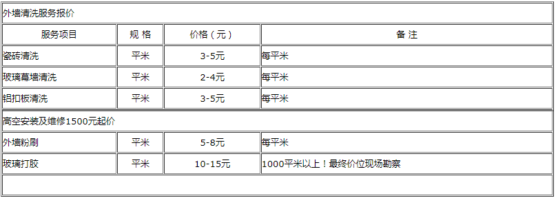 首页 |公司简介 |日常保洁 |外墙清洗 |开荒保洁 |石材翻新养护 |地毯清洗 |烟道清洗 |服务报价 |联系我们