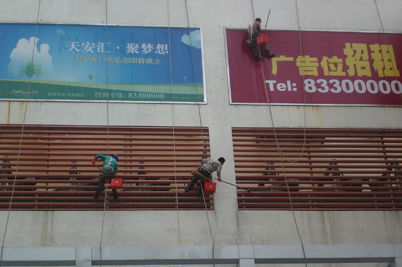 鉴于广告牌清洗这个工作的特殊性,因此整个现场必须是已经装修完毕,或者有相关其他保洁已经完成。并且在进行广告牌清洗中不得有闲杂人员出入施工现场,进入现场必须要经过清洗公司的同意并有足够的措施保证安全。